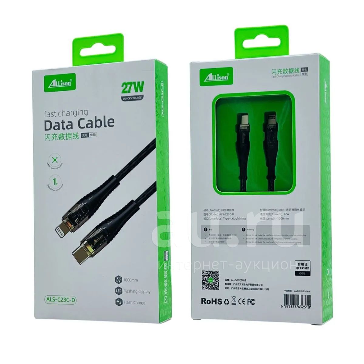 250руб.КАБЕЛЬ ALLISON ALS-C23C-D TYPE-C->LIGHTNING Black