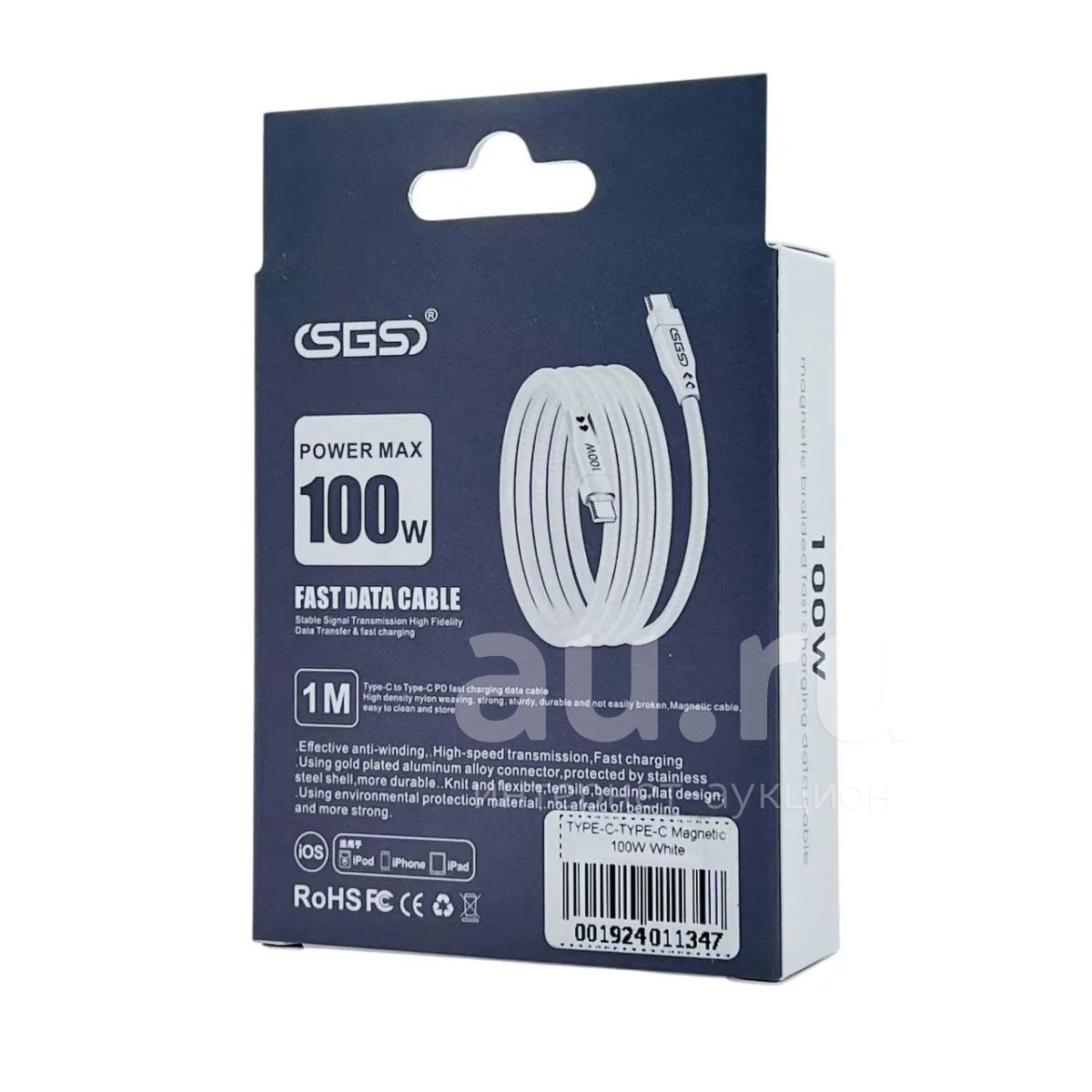 100руб.Кабель SGS i16C TYPE-C-TYPE-C Magnetic 100W White