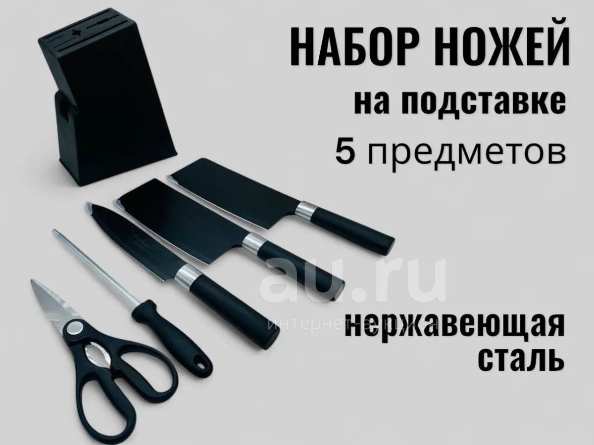 250руб.Набор кухонных ножей из нержавеющей стали и ножницы с подставкой СЕ