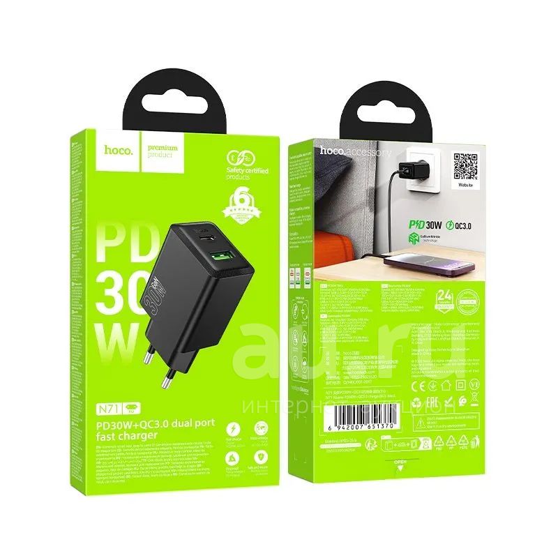 СЗУ HOCO N71 1A1C 30W QC3.0 Black