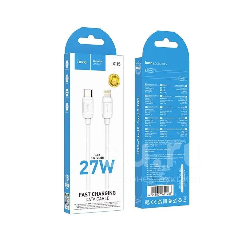 Кабель HOCO X115 PD27W TYPE-C->LIGHTNING 1m White