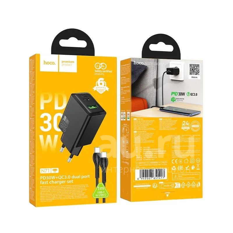 СЗУ HOCO N71 1A1C+Type-C(C-C) QC3.0/PD 30W Black