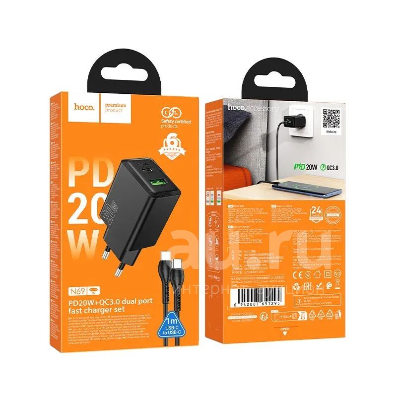 СЗУ HOCO N69 1A1C+Type-C(C-C) QC3.0/PD 20W Black