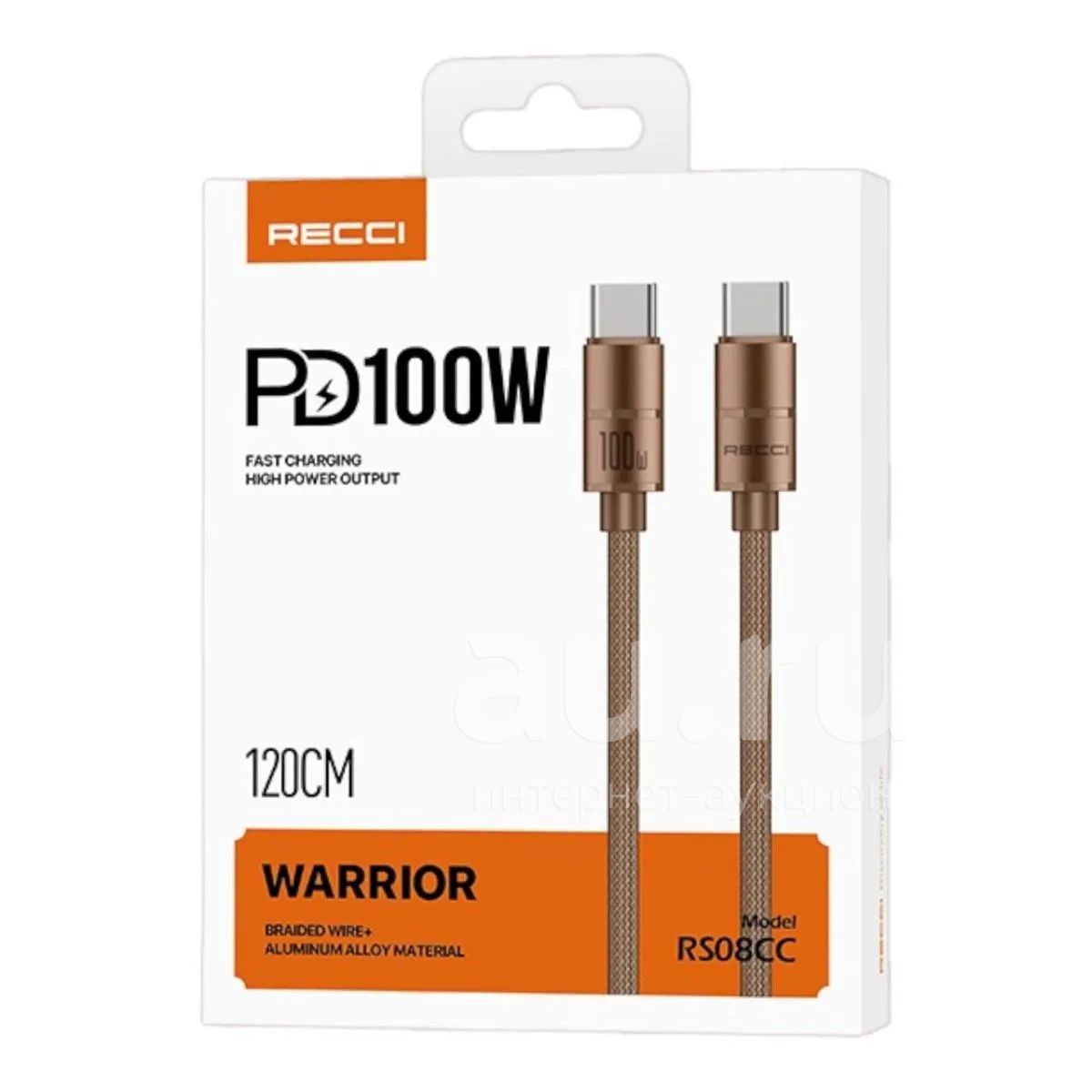 100руб.Кабель RECCI WARIOR TYPE-C->TYPE-C RS08CC 100W 1.2m Brown