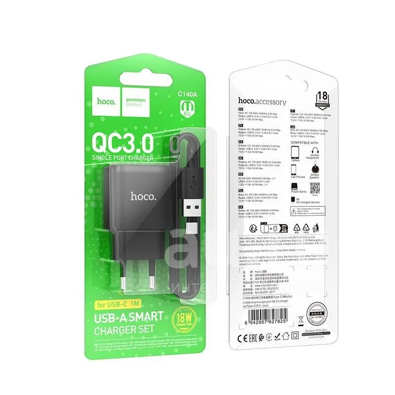 СЗУ HOCO C140A+Type-C QC 3.0 18W (Black)