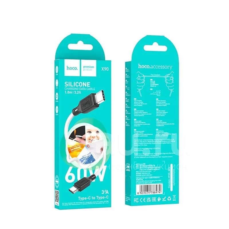 100руб.Кабель HOCO X90 TYPE-C->TYPE-C 1m 60W (White)