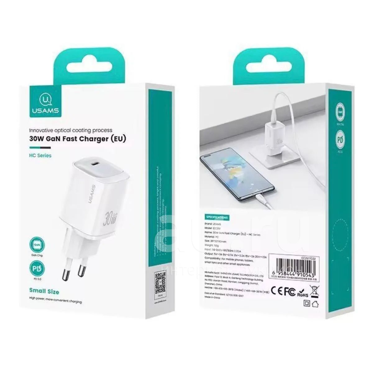 250руб.СЗУ USAMS CC251 USB-C PD 30W GaN FAST CHARGE White