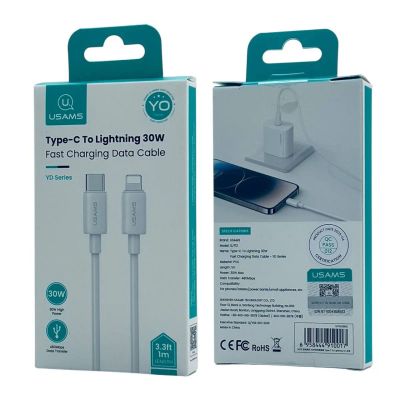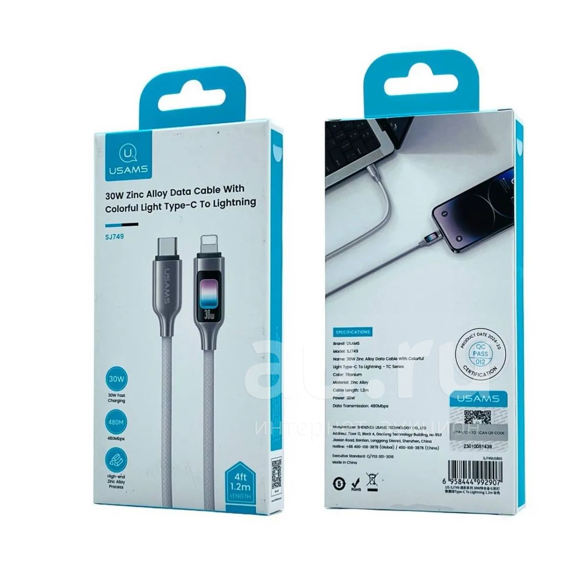 250руб.Кабель USAMS Type-C-->Lightning SJ749 PD 1.2m 30W RGB LED Titanium