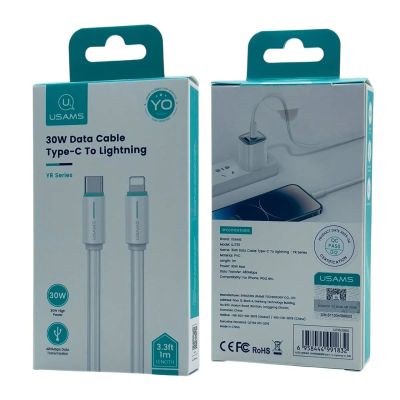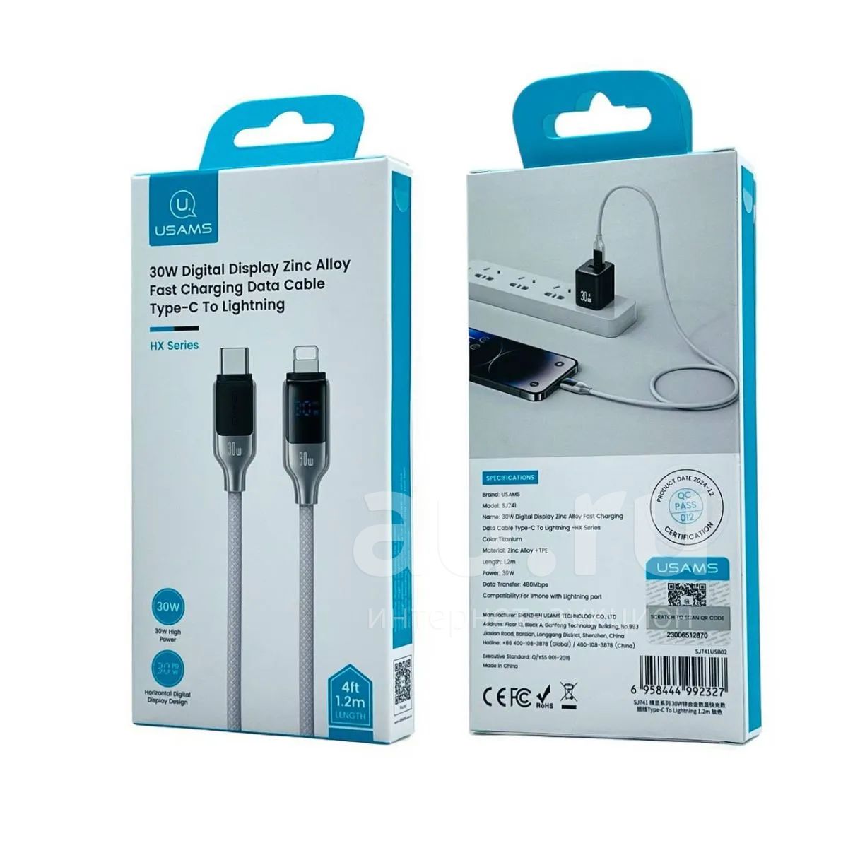 250руб.Кабель USAMS Type-C-->Lighting SJ741 PD 1.2m 30W LED Titanium