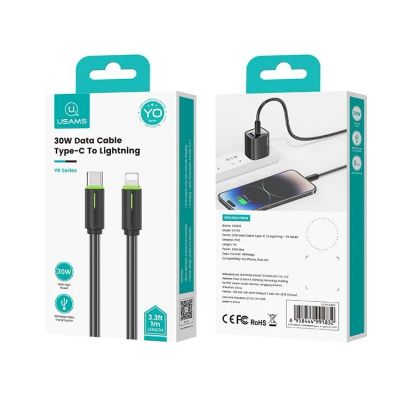 Кабель USAMS Type-C-->Lighting SJ741 PD 1.2m 30W LED Titanium