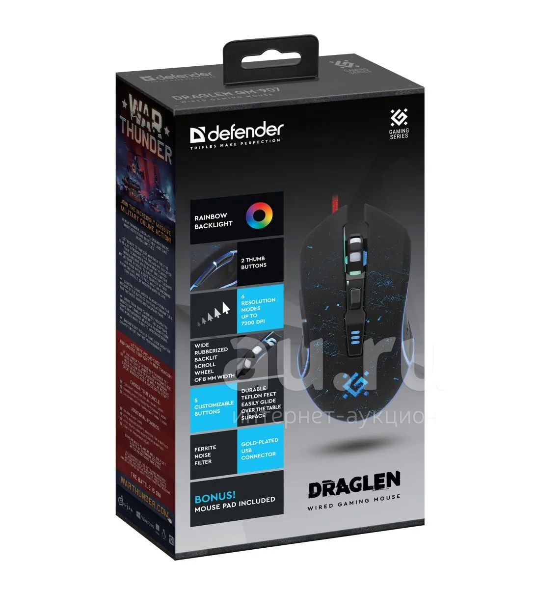 250руб.МЫШЬ ПРОВОДНАЯ ИГРОВАЯ DEFENDER Draglen GM-907 черн,радуж,6кн,7200dpi...