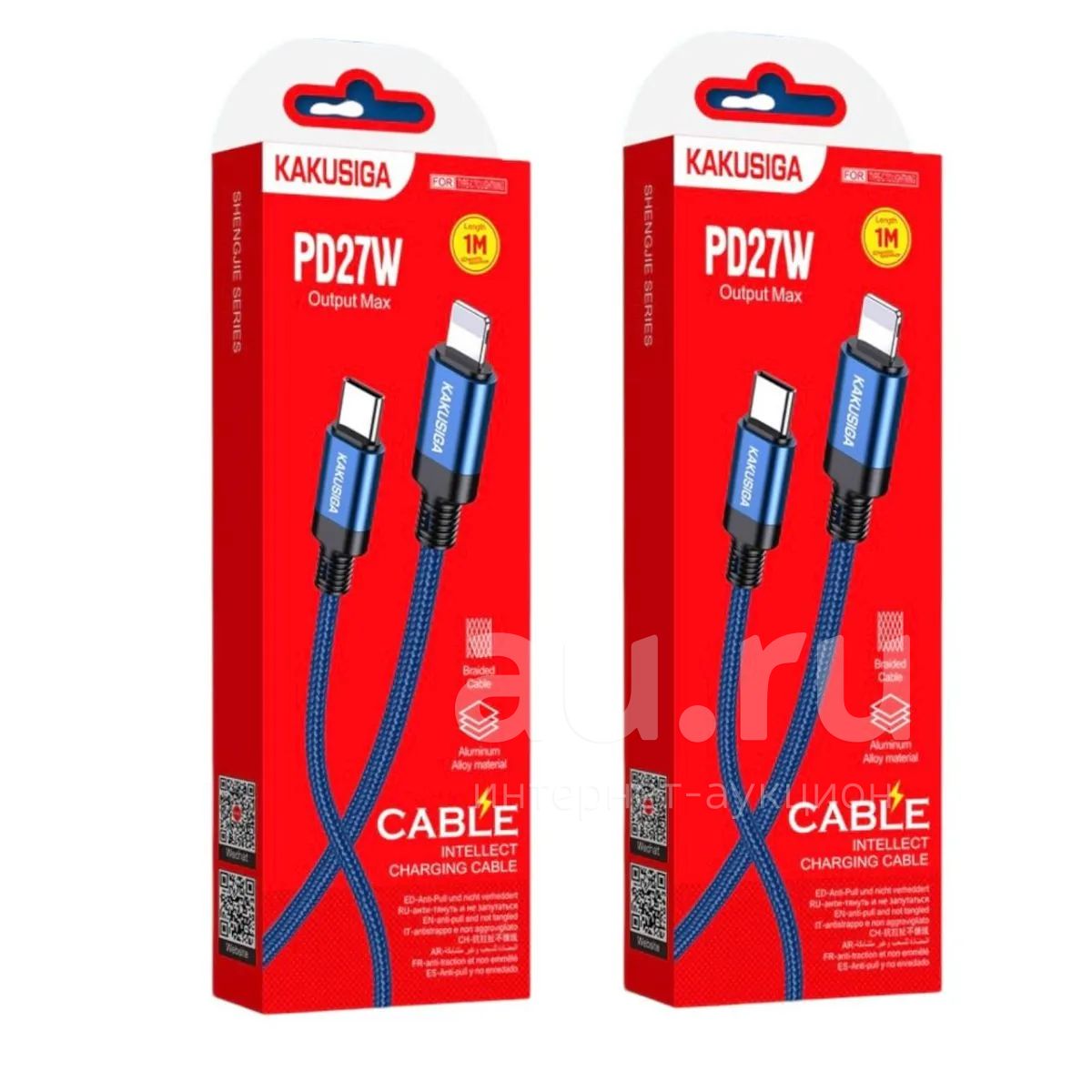 250руб.КАБЕЛЬ KAKUSIGA KSC-970 TYPE-C->LIGHTNING 27W 1m Blue