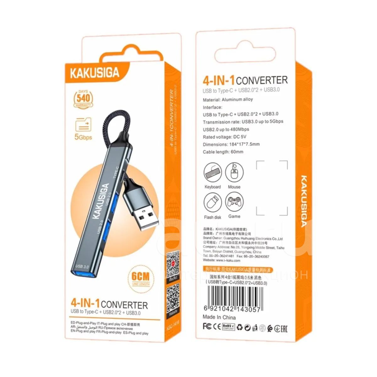250руб.USB HUB*4 USB3.0 KAKUSIGA KSC-1416 Metall