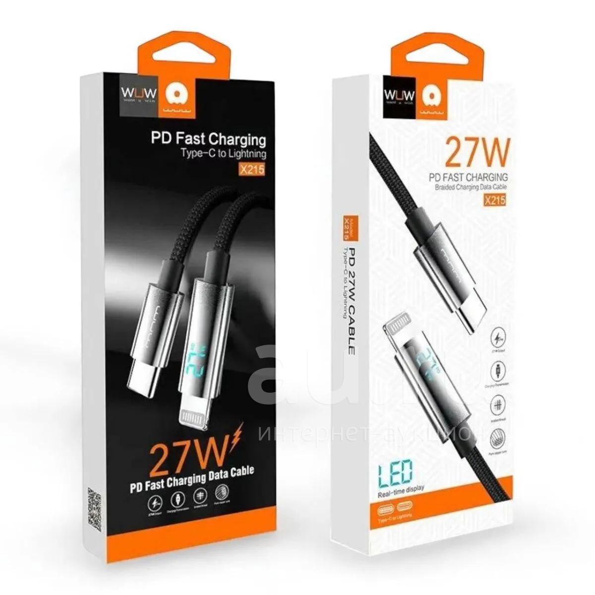 250руб.Кабель WUW X215 Type-C->Lighting PD 27W LED Black