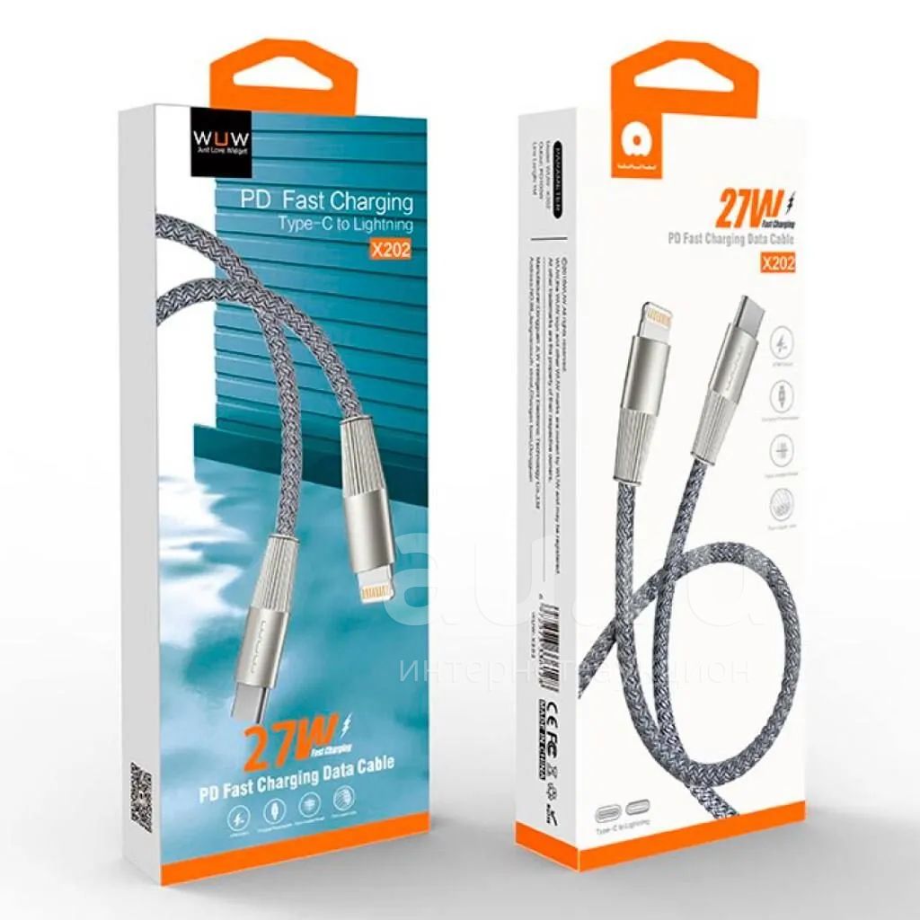 250руб.Кабель WUW X202 Type-C->Lighting PD 27W Grey