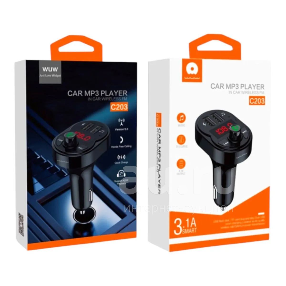 250руб.FM-МОДУЛЯТОР WUW C203 3.1A Black