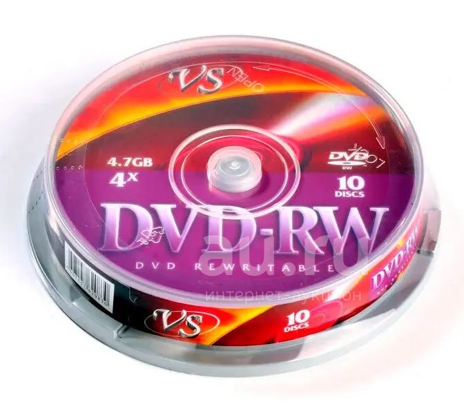 250руб.Диски VS DVD-RW 4.7 Gb 4x Cake Box 10 (200)