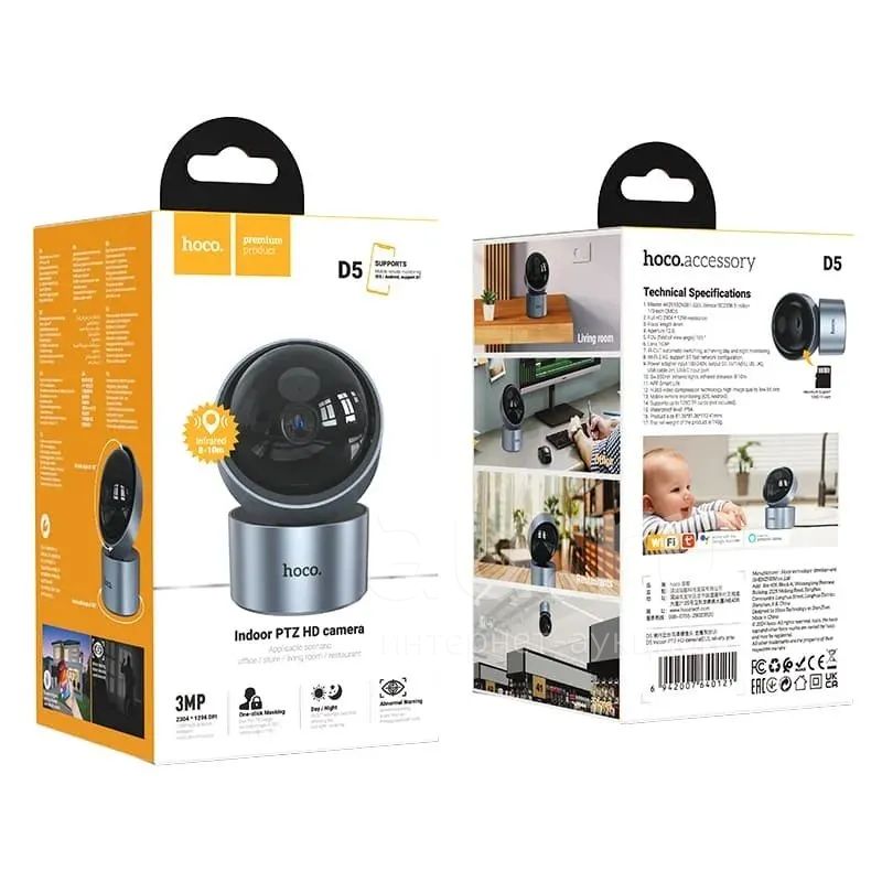 500руб.IP CAMERA HOCO D5 Indoor PTZ HD camera Silvery Gray