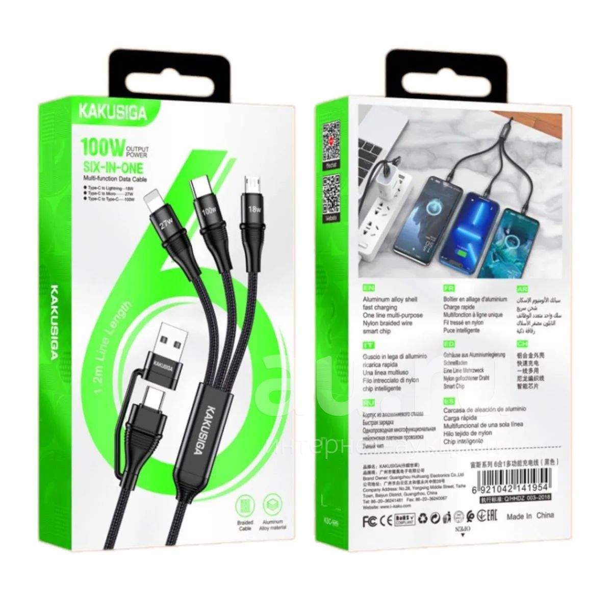 Кабель Kakusiga KSC-989 ZHOUSI 6-in-1 multi-function charging cable 100W Black