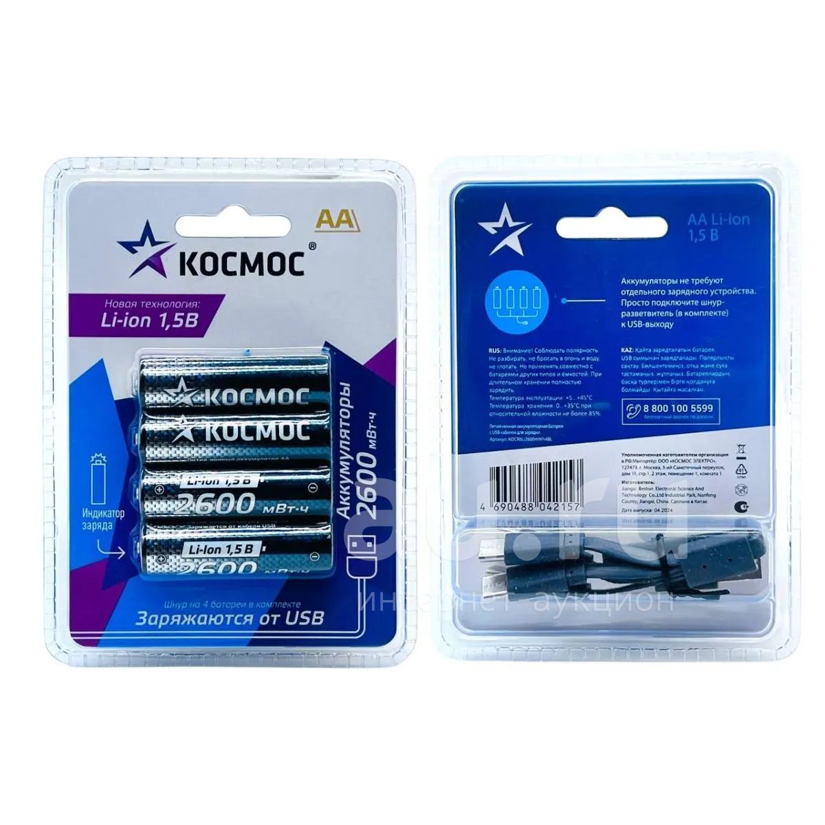 500руб.AKK КОСМОС R06 АА Li-ion 2600мВтч 4 шт в на блистере