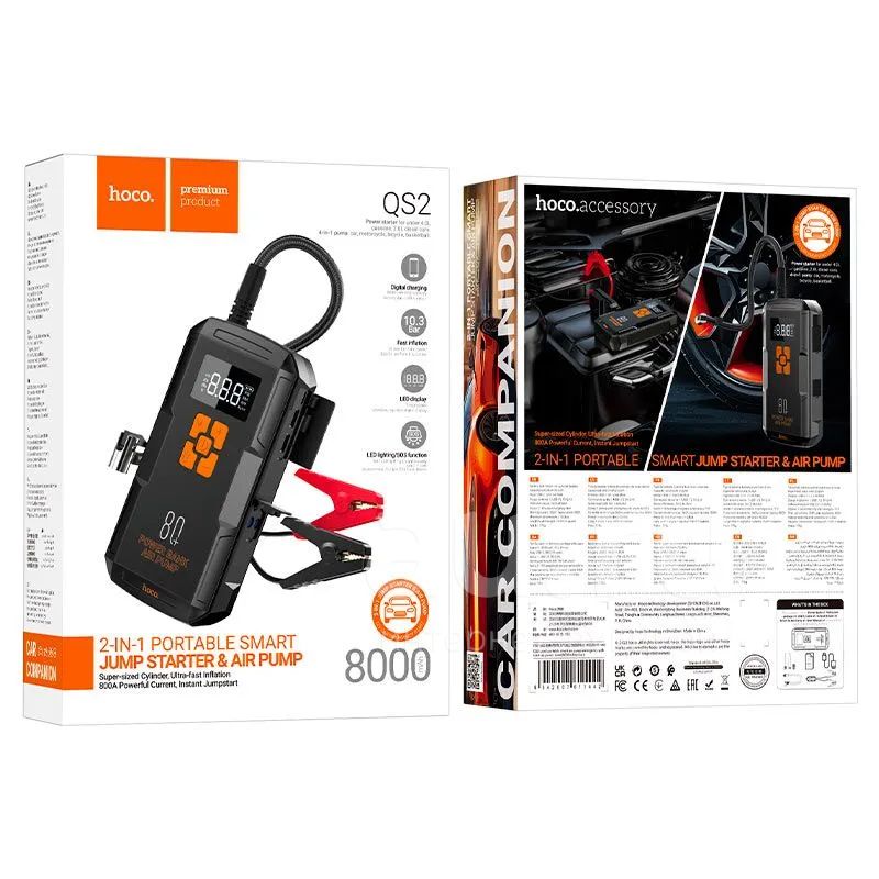 Пусковое зарядное устройство+компрессор для а/м 2в1 HOCO QS2 Land portable smart air pump emergency with start-up power bank(8000mAh)