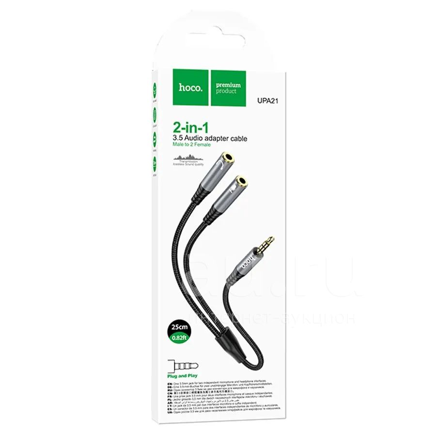 300 руб.Кабель HOCO UPA21 3.5jack(М)->2х3,5(F) Metal grey