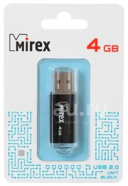 Флешка FLASH DRIVE MIREX 4GB USB 2.0 UNIT BLACK (ecopack)