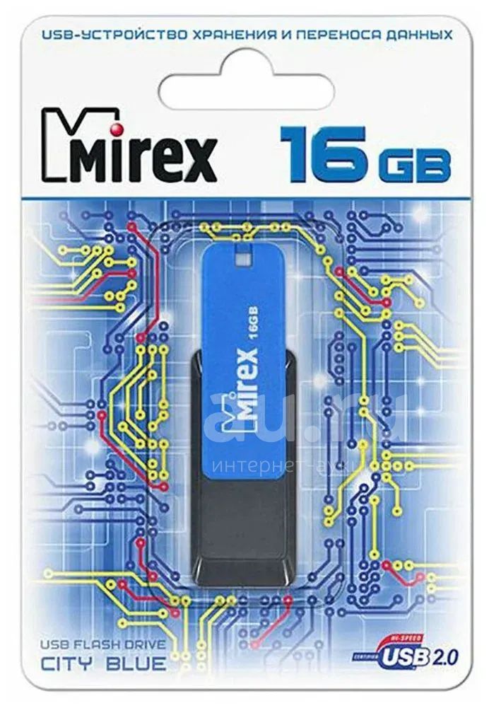 250руб.Флешка MIREX 16GB USB 2.0 CITY BLUE (ecopack)