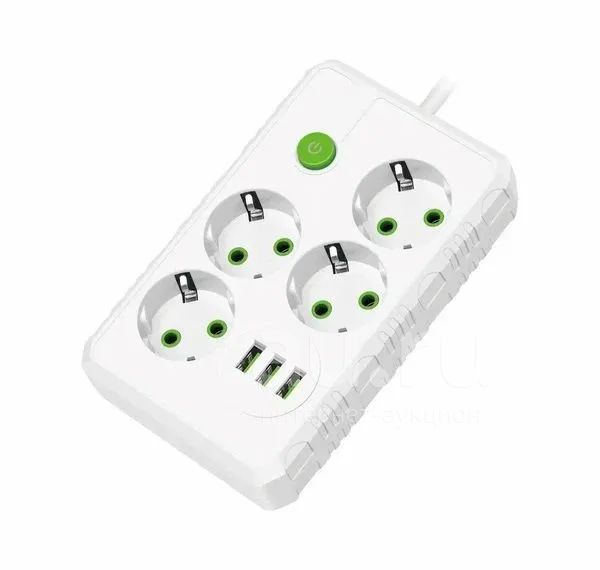 500 руб.Сетевой удлинитель Amper 4,0м, 4 розетки, 10А, 2500 Вт, 3usb, белый.