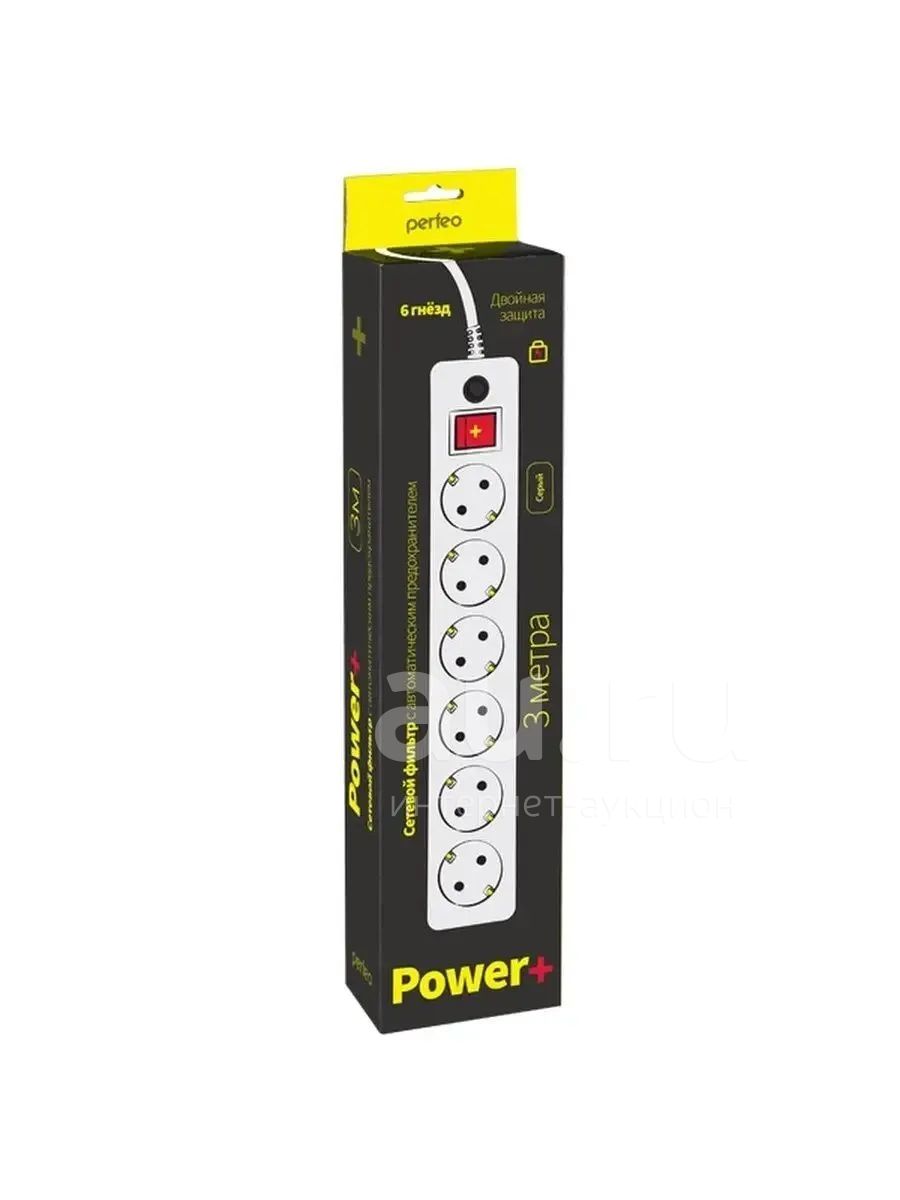 500 руб.Сетевой фильтр Perfeo «POWER+» с предохранителем, 3,0м, 6 розеток, се...