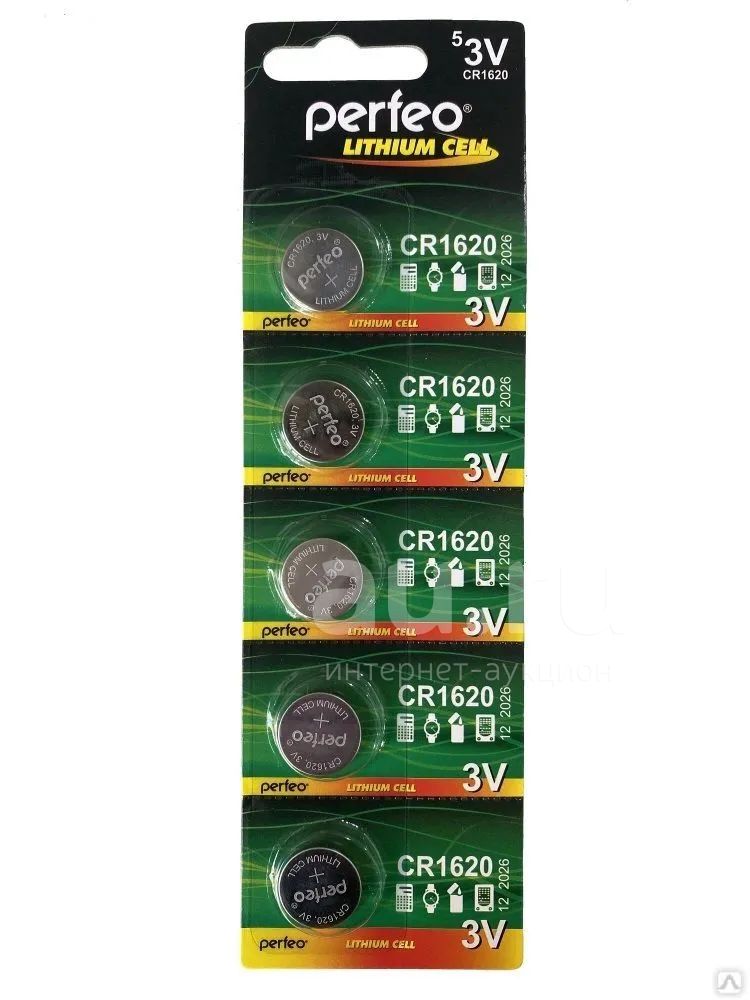 500руб.Батарейка PERFEO CR1620\5BL LITHIUM CELL