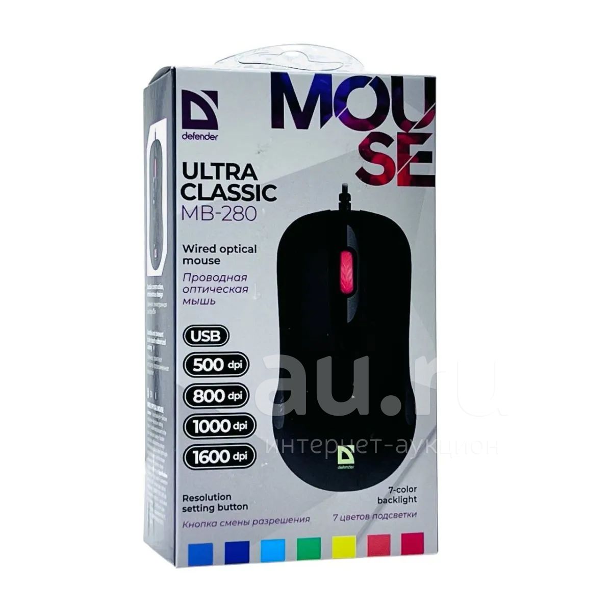 500руб.МЫШЬ ПРОВОДНАЯ DEFENDER ULTRA CL. MB-280 4кн BK