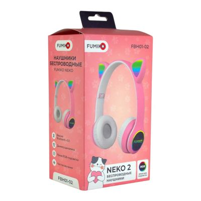 Наушники накладные беспроводные FUMIKO NEKO V2 розовые
