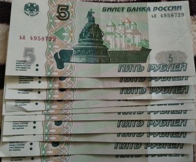 ЛОТ ИЗ 10 банкнот по 5 рублей 1997 года