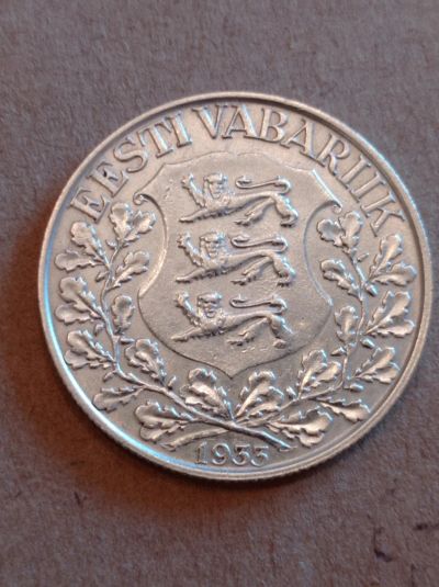 1 крона 1933 г. Эстония. Лира. 10 -й песенный фестиваль. Редкость.Серебро