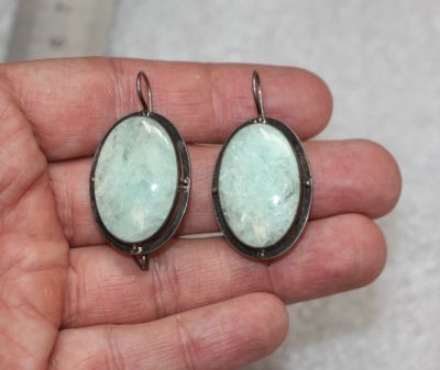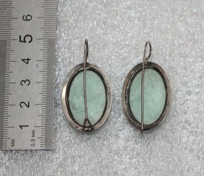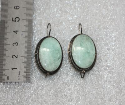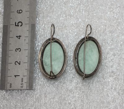 Авторские серьги, сережки с зеленым камнем. На вид серебро, клейм нет. КАМень???